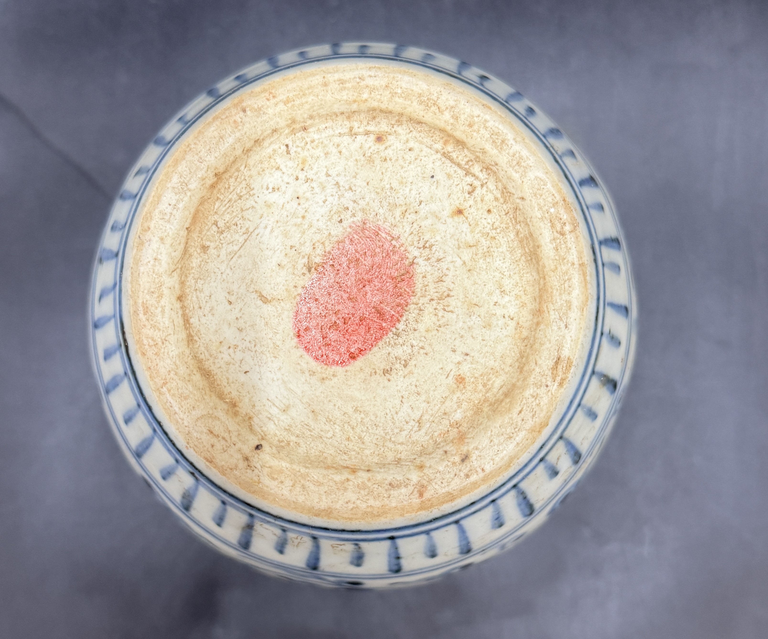 明晚期青花雖少了官窯的雍容,卻多了民窯的質(zhì)樸鮮活,如此紋飾精美、器型完整的纏枝蓮紋瓷罐存世并不多見。它不僅是一件實(shí)用與藝術(shù)兼具的古器,更是研究明晚期民窯青花工藝、民俗文化的珍貴實(shí)物:從青花料的發(fā)色可窺當(dāng)時(shí)民窯用料的特色,從纏枝蓮的紋飾布局能探明代民間審美取向。