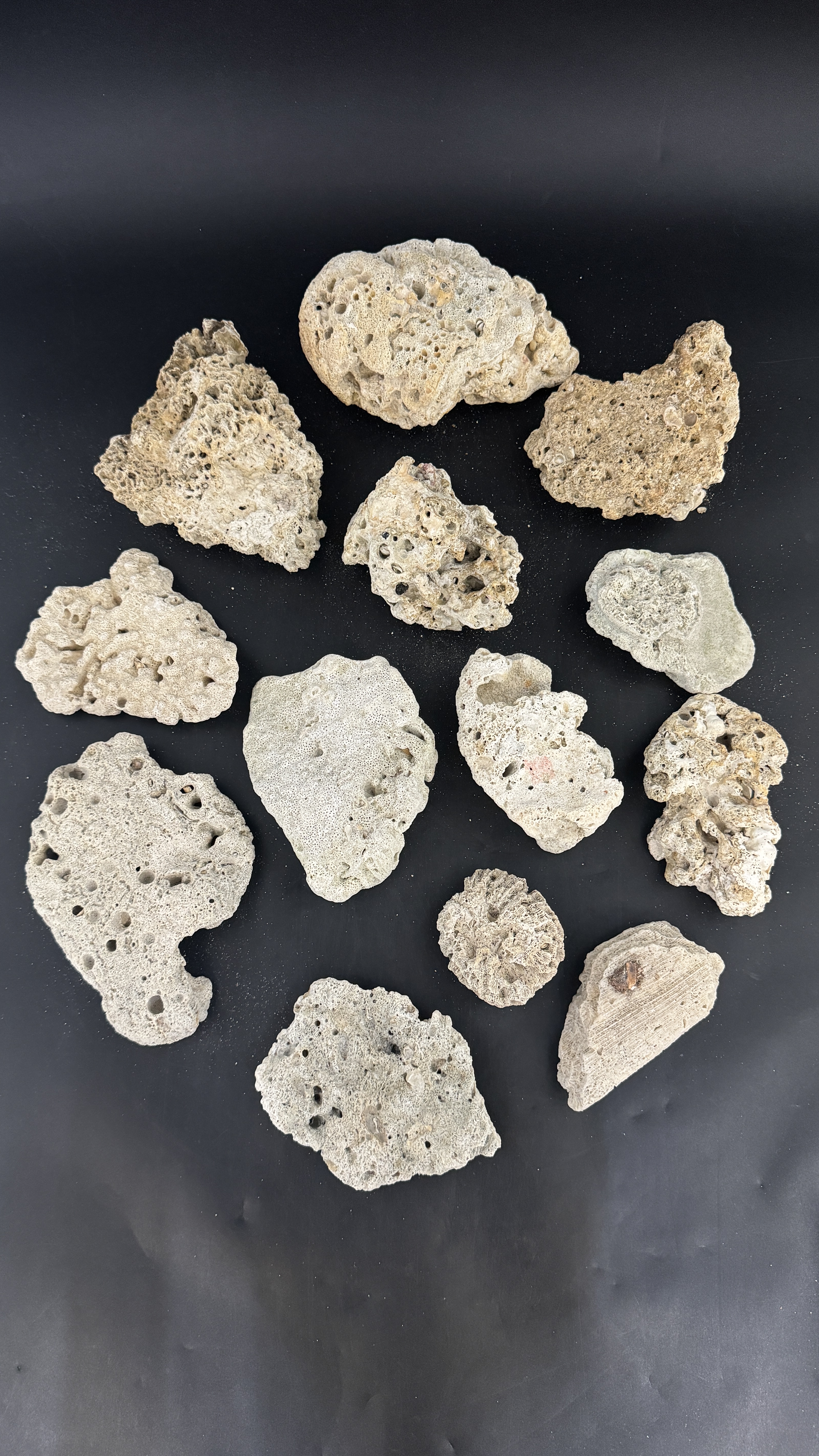 珊瑚礁是由珊瑚蟲的骨骼堆積而成的地質(zhì)結(jié)構(gòu),在海洋生態(tài)系統(tǒng)中具有重要地位,同時也是具有一定科研和收藏價值的自然藏品。這些珊瑚礁石形態(tài)各異,沒有統(tǒng)一的規(guī)則形狀,有的呈塊狀,有的為不規(guī)則的片狀或瘤狀,表面凹凸不平,充滿了自然形成的溝壑、孔洞與突起,展現(xiàn)出珊瑚生長過程中以及后期受海洋環(huán)境影響形成的獨特肌理。