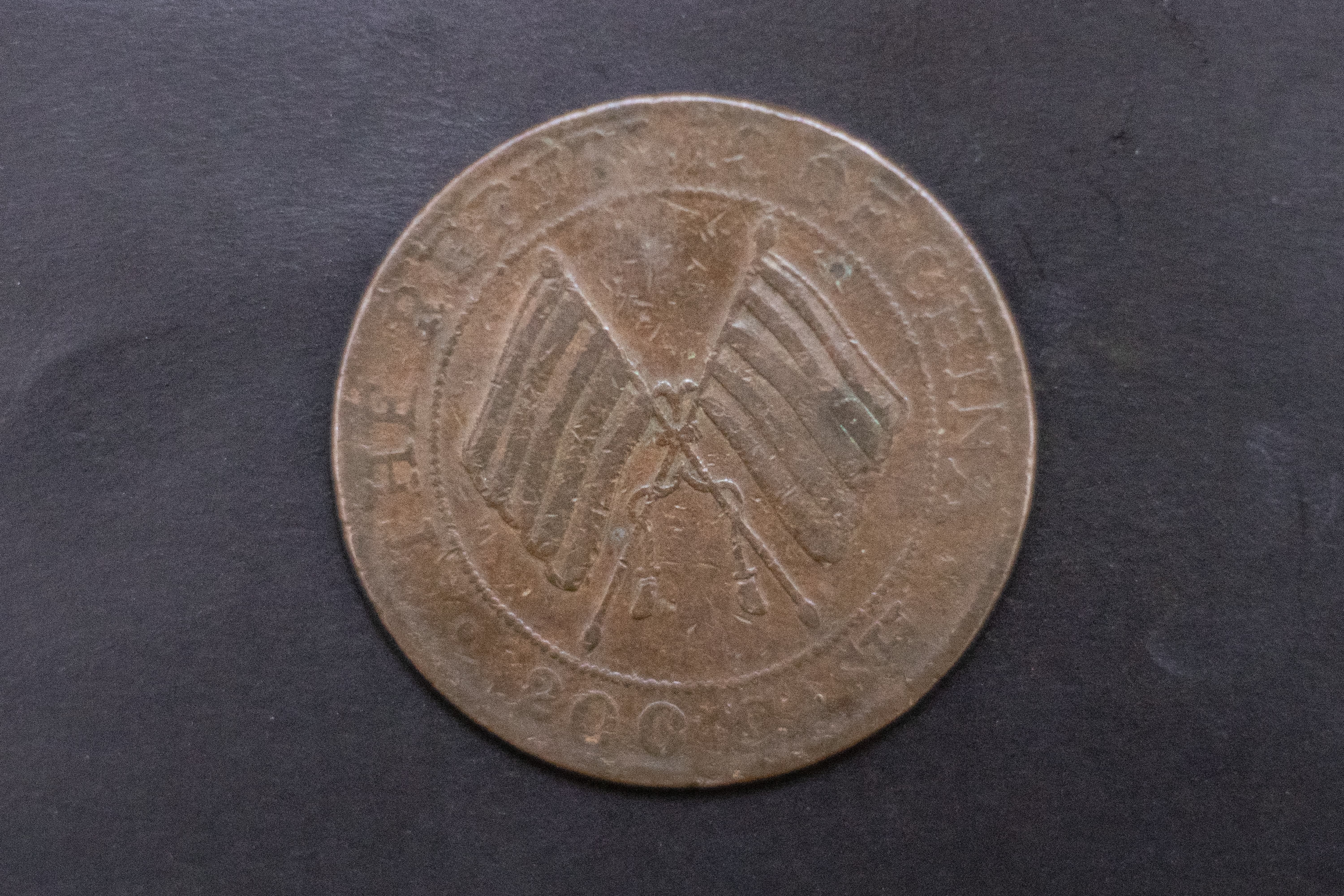 1912 年民國建立后,為統(tǒng)一貨幣體系、結(jié)束清末以來的幣制混亂,各地造幣廠紛紛開始鑄造新式錢幣,“雙旗幣” 應(yīng)運而生。四川造幣廠作為西南地區(qū)重要的造幣機構(gòu),所鑄貳佰文雙旗幣,以 “兩面交叉的民國國旗” 為核心圖案,正面鐫刻 “貳佰文” 面值與精致花紋,背面輔以嘉禾、英文等元素,既彰顯了新時代的政治符號,又延續(xù)了傳統(tǒng)錢幣的吉祥寓意。