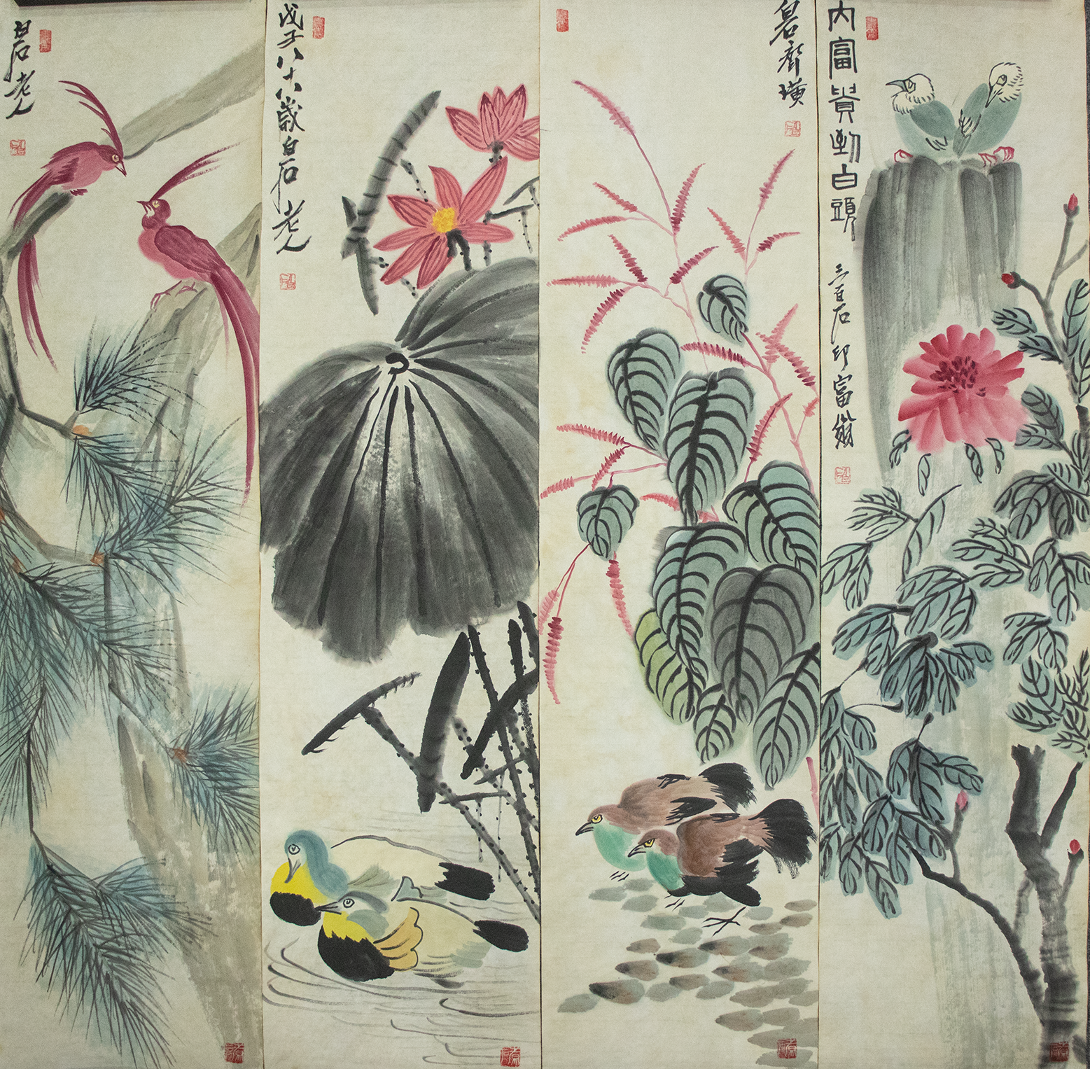 齊白石花鳥四條屏:雅俗共賞的傳世典范,藏家必藏的吉祥藝術瑰寶