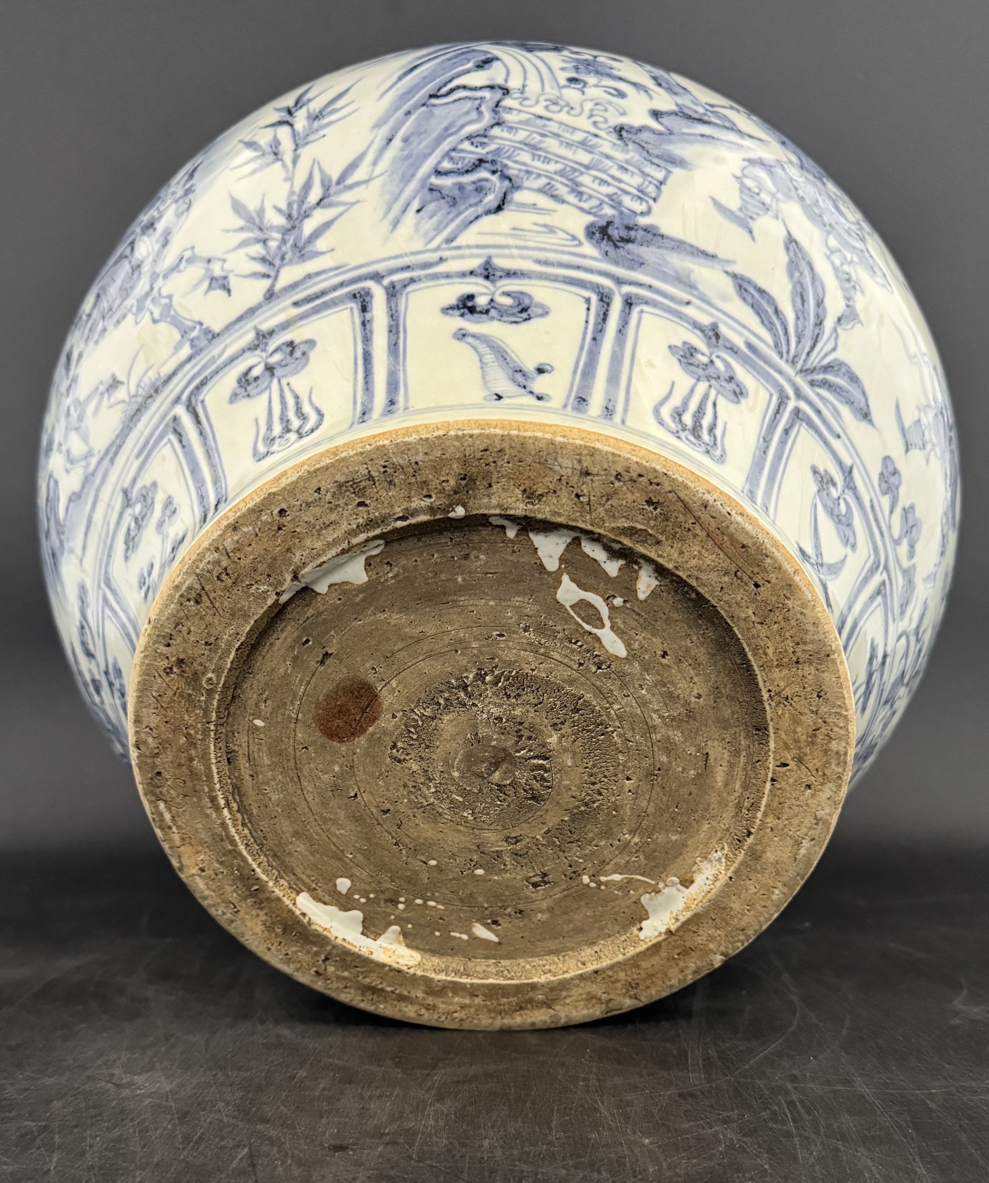 元青花鬼谷子下山大罐,誕生于元朝這一文化交融、藝術(shù)迸發(fā)的輝煌時(shí)代。它以精湛絕倫的制瓷工藝驚艷世人,罐體選用優(yōu)質(zhì)瓷土,經(jīng)過(guò)精心淘洗、拉坯、修坯等多道工序,塑造出圓潤(rùn)飽滿、線條流暢的完美器型。